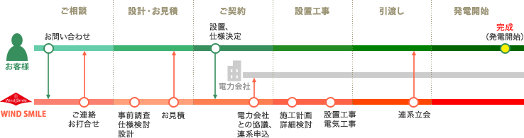 WIND-SMILEは、太陽光発電システムに関して、企画設計から施工まで、一貫して行なっています。